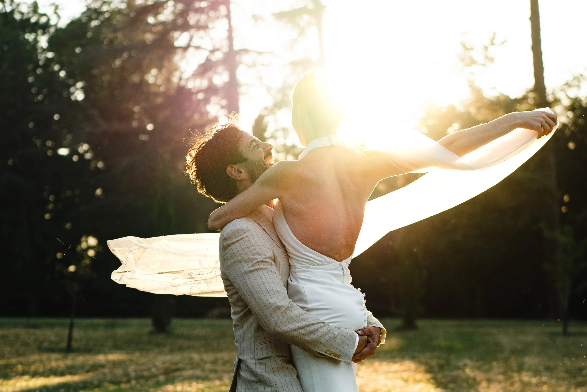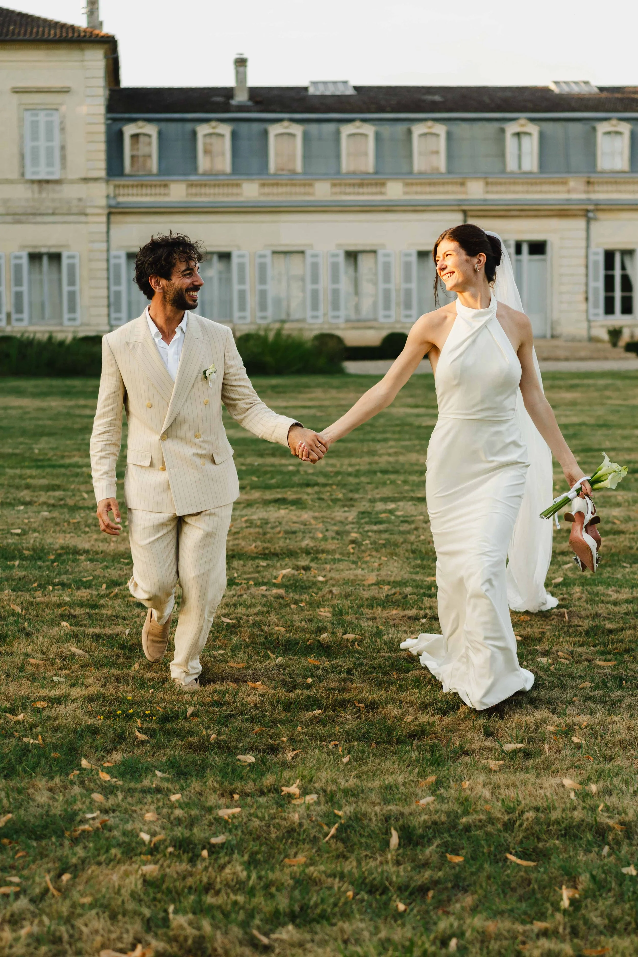 Nous avons ensuite profité de la "Golden Hour" avec la vidéaste pour réaliser une séance couple, la lumière était juste sublime et la complicité entre Emilie & Romuald suffisait à rendre le moment épique, nous sommes également rentrés dans le chateau, pour faire des photos dans les escaliers, dans la chambre nuptiale qui donne sur le grand jardin, et bien sûr dans la magnifique cuisine ! C’est un toujours une petite bulle d'intimité, loin de l'effervescence de la fête avant que les festivités ne démarrent pleinement.
